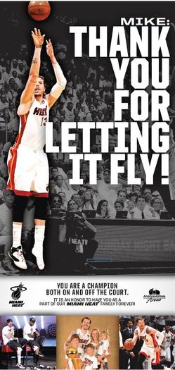 The Miami Heat waived veteran player Mike Miller a few days ago. With Miller being waived, the team avoided a $17 million tax payment to the NBA on his 2013-14 contract. Today, the Heat took out an ad in the paper to let the player who helped win two championships know that they appreciate what he’s done for the team on and off of the court.