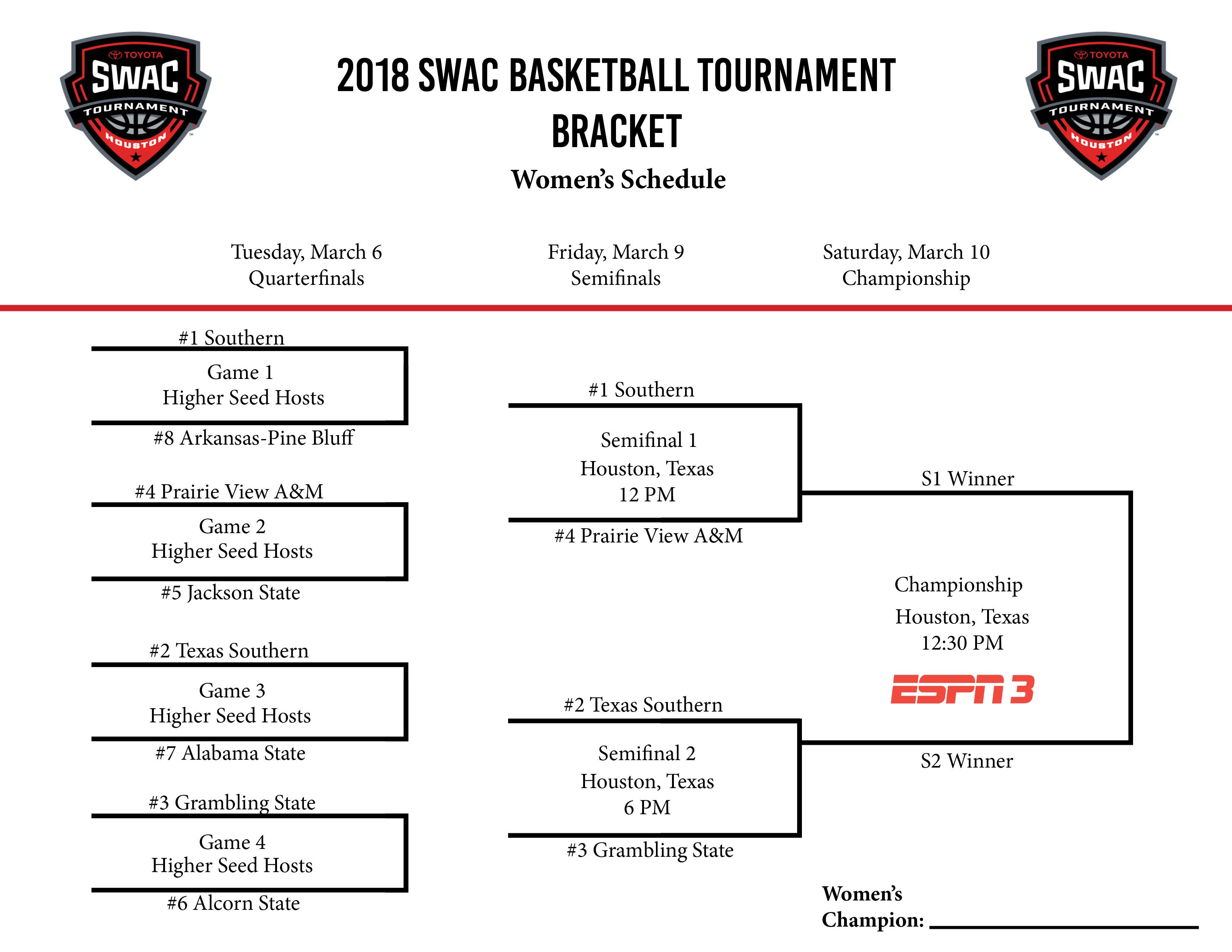 Home NCAA SWAC Tournament Info And Conference Awards List NCAA SWAC Tournament Info And Conference Awards List By Derrick Vanison - March 8, 2018 2221 0 Share on Facebook Tweet on Twitter tweet It’s SWAC Tournament Time! SWAC Tournament 1 of 7 RELATED ARTICLESMORE FROM AUTHOR NCAA The 2025 Omaha 8 Is Set NCAA Louisville Baseball Double Play In The 2025 Super Regionals NCAA Big 12 2025 Volleyball Schedule Articles The Start Of March Madness Is The Start Of Houston Being... March 16, 2023 FIBA Intercontinental Cup pairings drawn in Tenerife January 14, 2023 I Went Back To School to Get My Degree. Here January 12, 2023 Sports World Denzel Clarke Beautiful Catch June 10, 2025 Louisville Baseball Double Play In The 2025 Super Regionals June 9, 2025 Aaron Judges Get 15th Homer Of The Season May 23, 2024