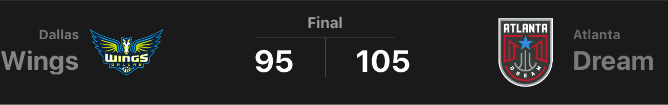 The young Atlanta Dream takes down the also young Dallas Wings in the season opener for the two teams by a score of 105-95 .