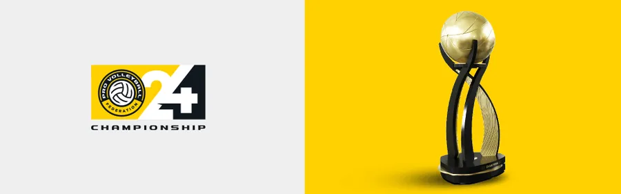 The inaugural championship logo incorporates the primary logo of Pro Volleyball Federation and a “24” to designate the first year of League competition. The interlocking 2 and 4 signify the coming together of these pro athletes, ownership groups and fans to celebrate the first season for the league. The Gropro font is used for the word “Championship” below the primary logo and year. The logo will be utilized in all facets of the postseason playoff for Pro Volleyball Federation, including at center court of the playing floor.